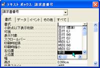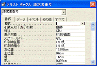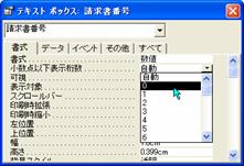 挿入したテキストボックスは、既定値としてテキスト型に設定されます。このままでは数値入力に適切ではないので、プロパティ[書式]を数値に設定します。請求書番号では小数点以下は不要なので、小数点以下の桁数は「0」にします。