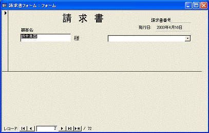 図2.76 フォームビューに切り替えた請求書フォーム
