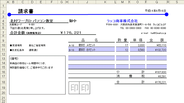 ここでは、請求明細を記録するテーブルを作成し、明細を入力して記録するようにします。また、請求書には合計額、消費税などを表示するようにします。