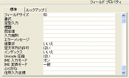 テキスト型フィールドのプロパティ[フィールドサイズ]は既定値の「50」にしてありますが、目的に合わせたサイズに変更可能です。
