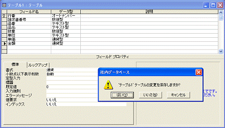 A テーブルを閉じるときのメッセージで、[はい]をクリック