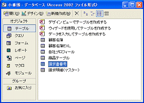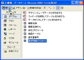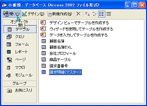 販売内容を集計したり分析したりするために、請求明細データから、顧客別の集計、月間の集計、商品別の集計、年間の集計といった処理が必要です。したがって、作成しているデータベースでは、請求明細を記録するテーブルがメインのテーブルになります。メインになるテーブルのことを、マスターテーブルといいます。
