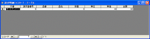 作成した請求明細(マスター)テーブルを開いて確認しましょう。図2.194は、作成したテーブルを開いたところです。ウィンドウからはみ出す場合は、スクロールするかウィンドウサイズを大きくして確認しましょう。