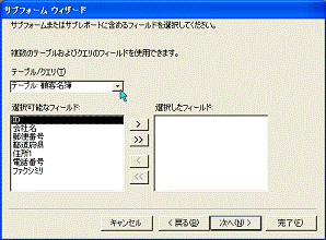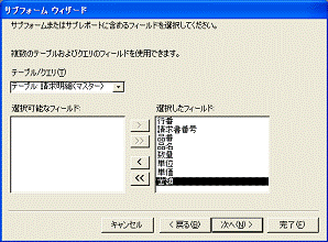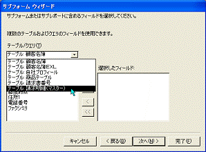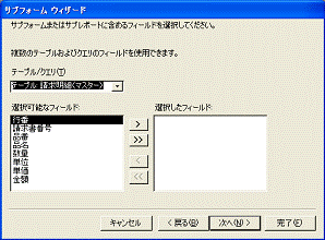 マスターテーブルとサブフォーム