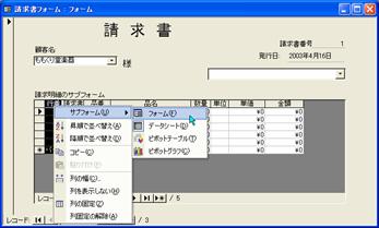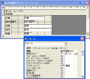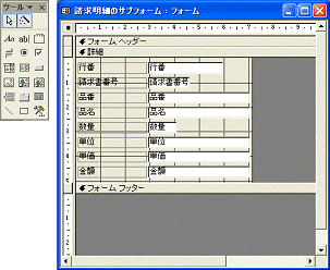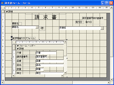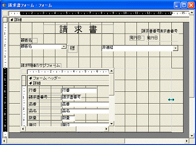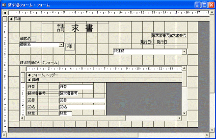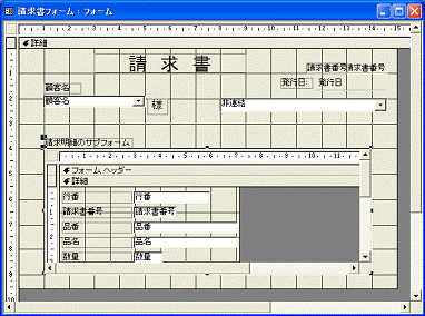 図2.236 請求書のサブフォームがデザインビューで開く
