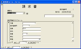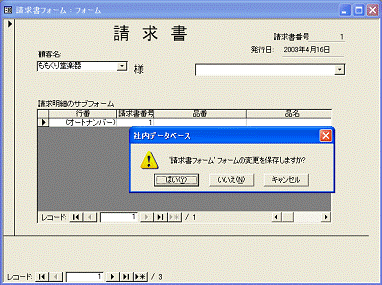 表示を確認するときは、サブフォームを閉じてから請求書フォームを開きます。サブフォームを閉じてからでないと、親フォームを開くことはできません。
