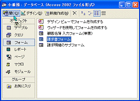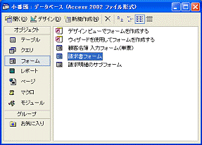 図2.243 データベースウィンドウのフォーム一覧