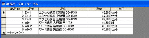 以下の図__「商品テーブル」はデータ入力の参考用です。