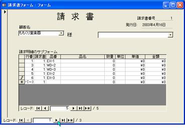 上の操作では、[Enter]キーを押して請求明細の次の行にカーソルを移動しましたが、サブフォームのレコードボタンをクリックして進めることもできます。