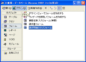 図2.235@請求書のサブフォームを選択して[デザイン]をクリックする