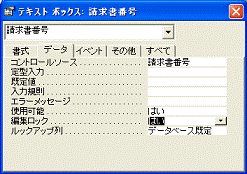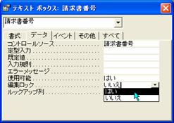 自動的にデータが入力されるフィールド(このフォームではオートナンバーを指定した「請求書番号」フィールド)が入力ミスによって書き換えられないように、フィールドを編集ロックします。