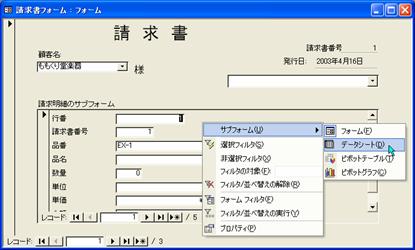 請求書のサブフォームをデザインビューで開いて操作します。