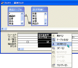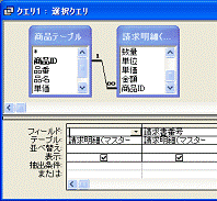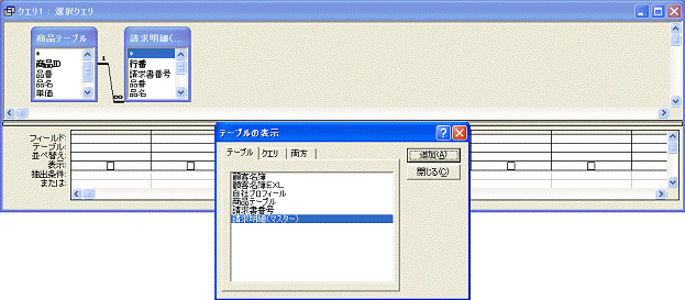 商品テーブルと請求明細(マスター)テーブルの、2つのテーブルのフィールド[商品ID]にリレーションシップを設定します。