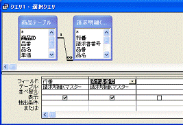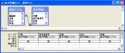 データベースウィンドウの[クエリ]タブの[請求明細クエリ]を選択して、[開く]をクリックするとクエリの結果が表示されます。