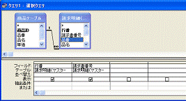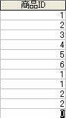 データを入力したら、テーブルを閉じてクエリを表示して結果を確かめます。参考図(商品テーブル)の商品IDの値を入力します。