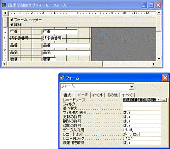 図3.69 請求明細のサブフォームがデザインビューで開く