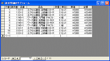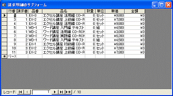 @請求明細のサブフォームを選択して反転表示にする