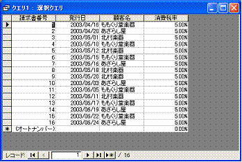 データシートビューに切り替えて、データが抽出されたようすを見てみましょう。図4.7のように、すべての請求書番号のデータが表示されます。確認できたら、デザインビューに戻します。