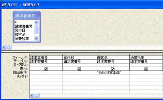 たとえば、請求書番号テーブルのフィールド[発行日]と請求明細(マスター)テーブルのフィールド[金額]から、○○会社の×月の請求総額を求めることなどができます。