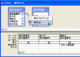 両方の[請求書番号]が同じであることをクエリに指定します。これを、「フィールドの結合」といいます。