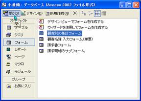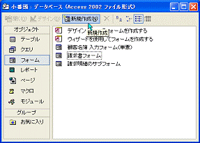 図4.51 データベースウィンドウでフォーム一覧を表示する